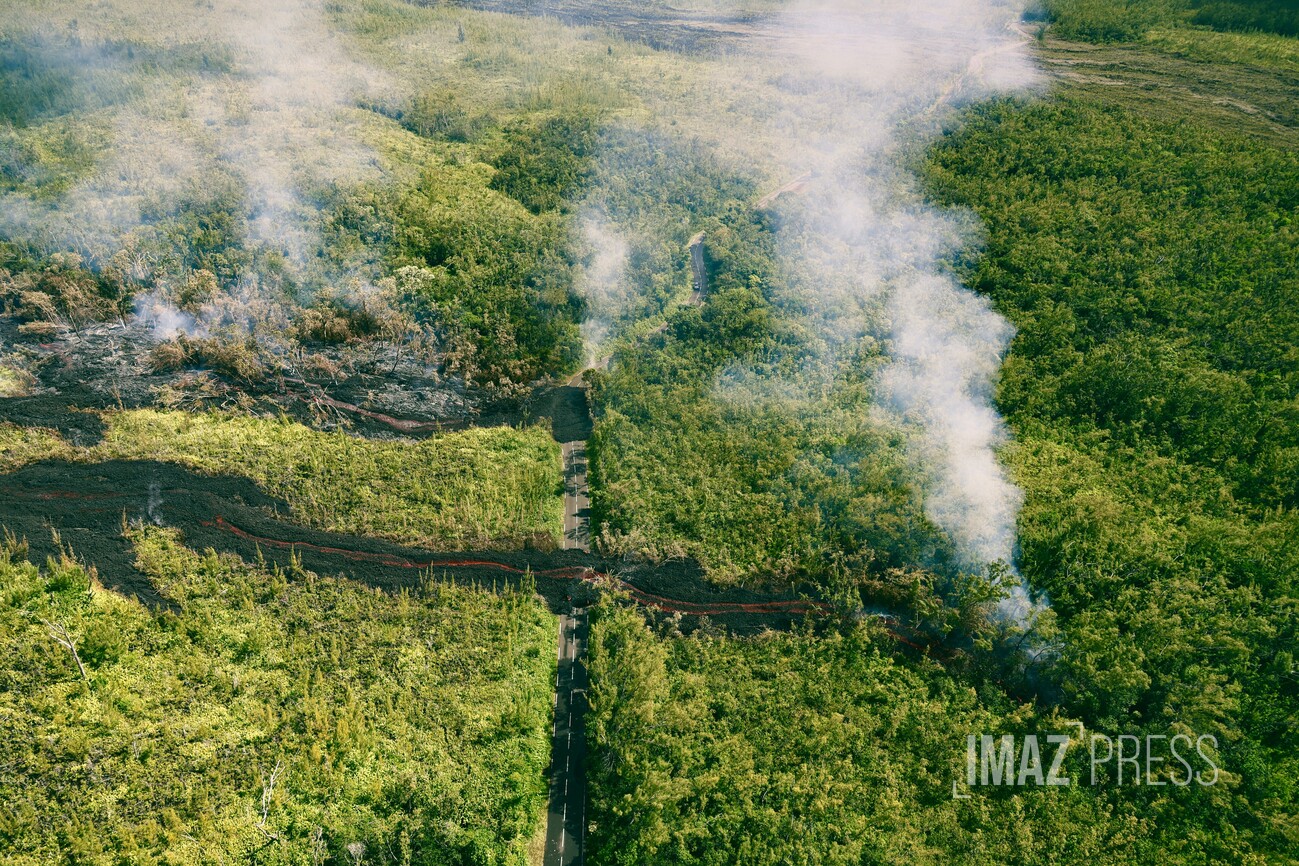 Des flammes, de la fumée... avec des températures affolants les compteurs, la lave en fusion brûle la route nationale 2.