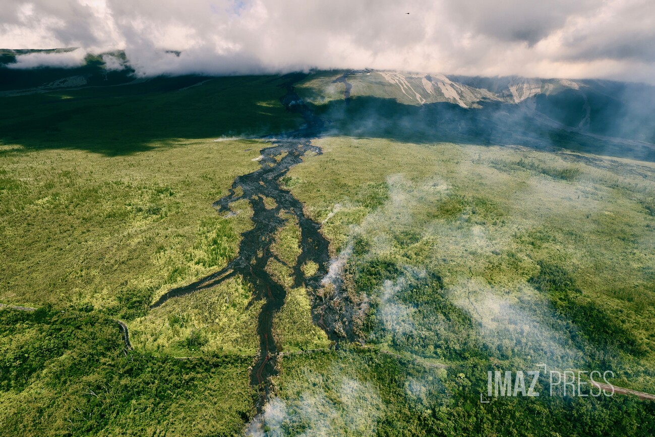 Notre photographe Richard Bouhet a eu la chance de survoler la descente des trois bras de coulée vers l'océan. Regardez.