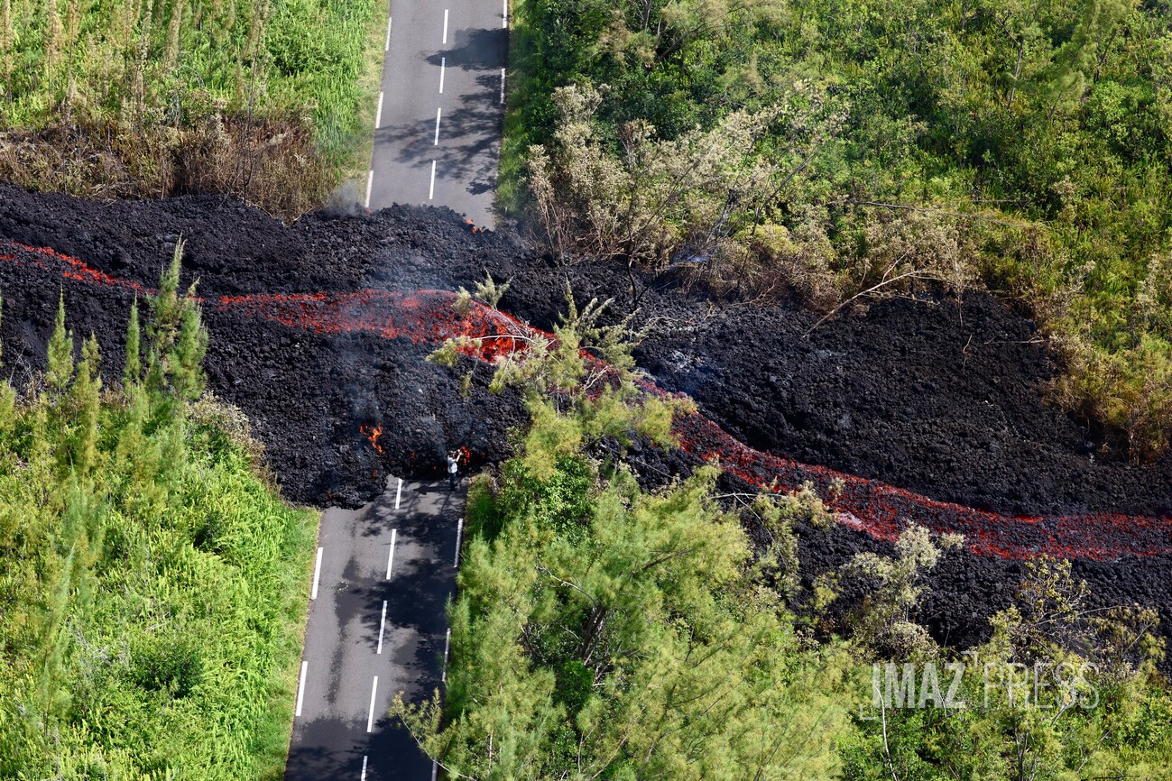 Deux bras de coulée ont traversé la route des Laves