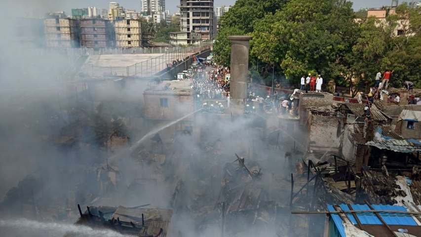 A massive fire broke out in a slum opposite the Bandra Fire Station in Mumbai, gutting at least 60 houses on Tuesday. No casualties were reported, but two women and two children were admitted to a hospital after they fainted due to shock.