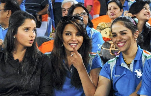 Hyderabadi girls - Tennis ace Sania Mirza and Badminton player Saina Nehwal along with Former Miss World Diana Hayden were spotted at one of the IPL 6 match held last year. (PTI)