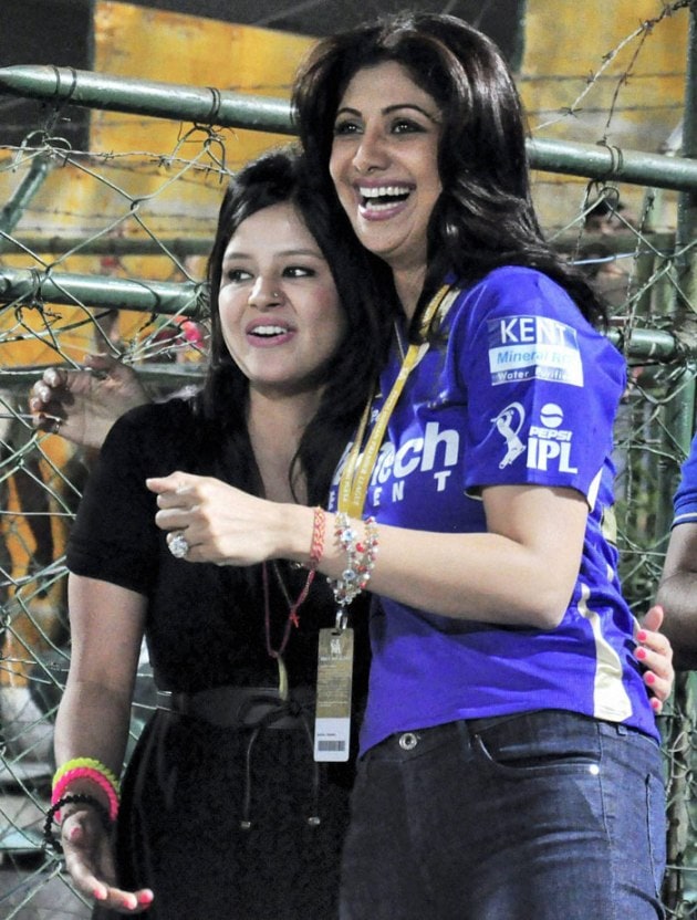 Actress Shilpa Shetty was seen bonding with wife of Chennai Super King's skipper Sakshi Dhoni at Swai Man Singh Stadium. (PTI)