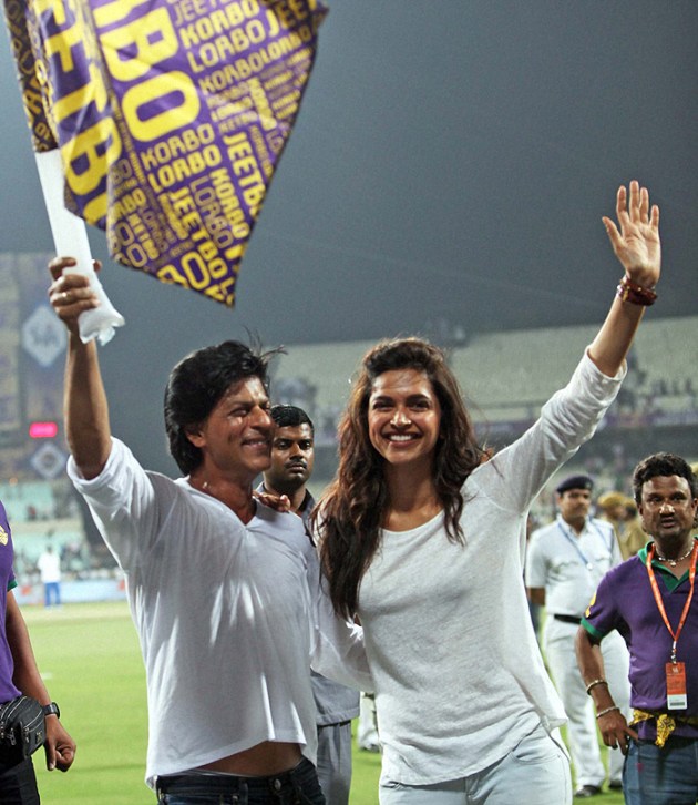 Deepika Padukone was seen cheering for her 'Chennai Express' co-star's team KKR at an IPL 6 match. Deepika was chilled out in ripped denims and white off shoulder top. (PTI)