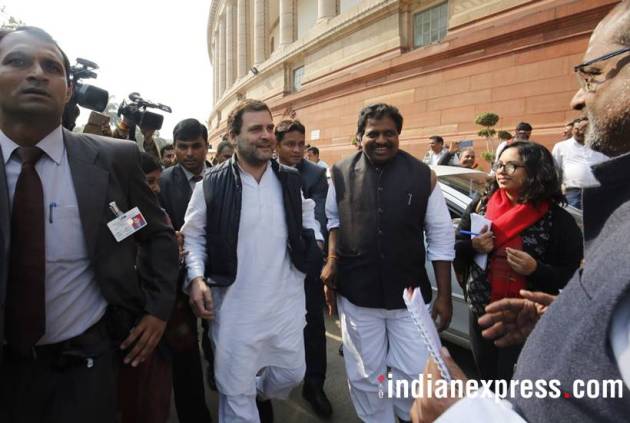 Congress President Rahul Gandhi after attending the Budget session on Thursday (Express Photo by Anil Sharma)