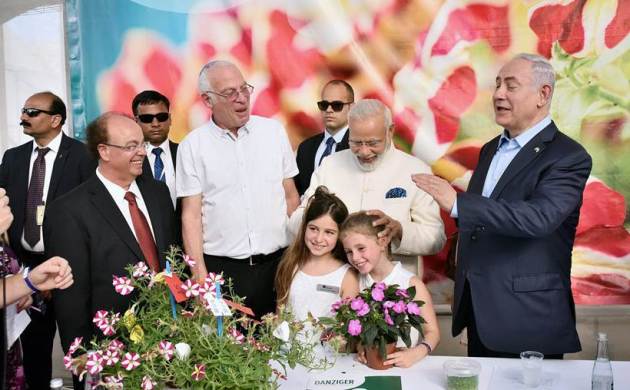 PM Modi visited Danziger βDanβ Flower Farm in Mishmar Hashiva, accompanied by Netanyahu and Agriculture Minister Uri Arie. Danziger βDanβ Flower Farm is a leading facility for R&D in plant varieties, in Tel Aviv (Source: PTI)