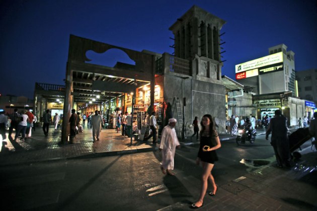 In this Monday, May 26, 2014 photo, people shop at a souq by the creek in Dubai, United Arab Emirates. Unlike the rest of the city, the Dubai Creek area has until now been left relatively untouched by developers, offering a glimpse into the modest beginnings of a city that is now a byword for wealth, excess and overnight development. (Source: AP)