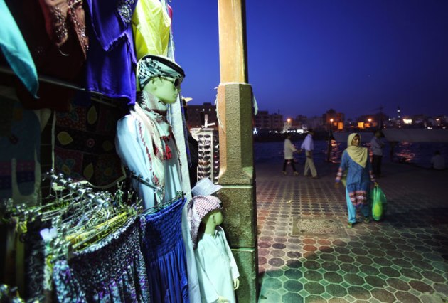 In this Wednesday, May 28, 2014 photo, people shop at a souq by the creek in Dubai, United Arab Emirates. (Source: AP)