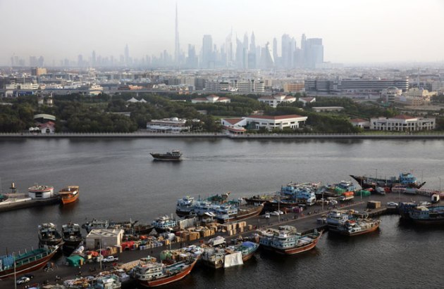 In this Monday, May 26, 2014 photo, trading dhows for uploading goods are docked at the creek in Dubai, United Arab Emirates. (Source: AP)