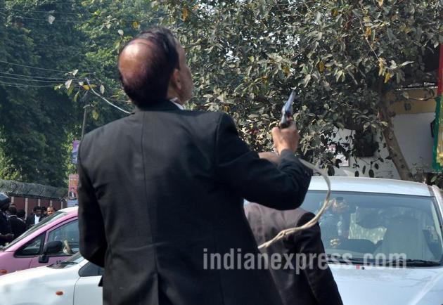 A Lawyer open fire on Police and Health Directrate officials during Lawyers protest against administration against a Lawyer shoot dead last night on February 9. (Source: Express Photo by Vishal Srivastav)