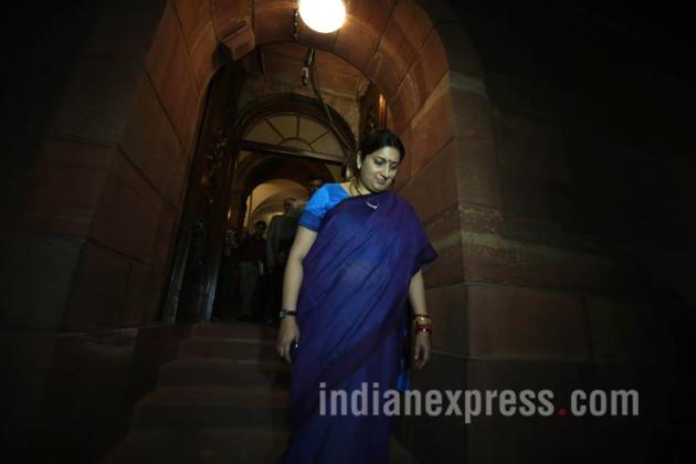 HRD Minister Smriti Irani outside the Parliament on February 2. (Source: Express Photo by Renuka Puri)