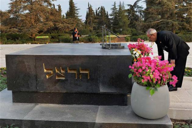 President Pranab Mukherjee during laying wreath at tomb of Theodor Herzl, at Mount Herzl, Jerusalem, in Israel on Tuesday (October 13).