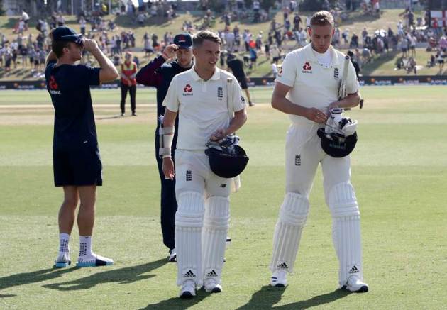 Stuart Broad and Sam Curran leave the field at the end of Day 5. New Zealand defeated England by an innings and 65 runs. (Source: AP)