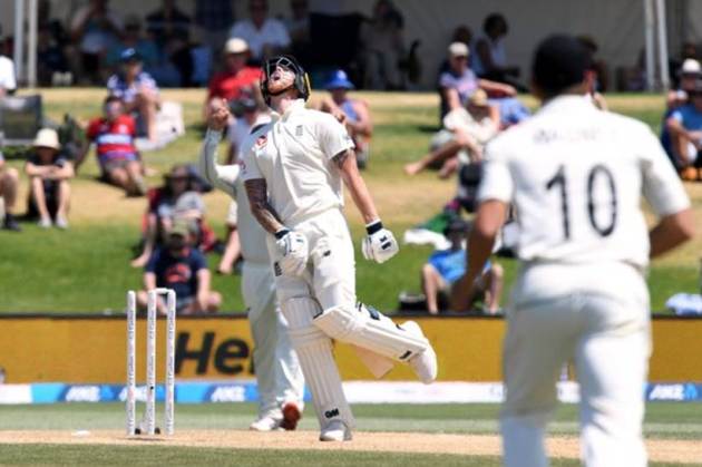 Neil Wagner, left, reacts after dismissing England's Ollie Pope during play on Day 5 (Source: AP)