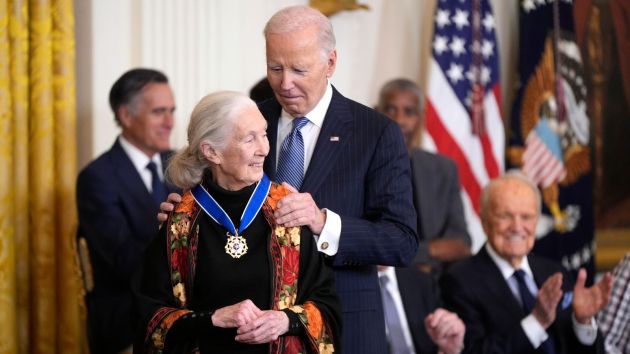 President Biden presented the nation's highest civilian honor to notable figures, including Hillary Clinton, Michael J. Fox, and Jane Goodall, for their dedication to making a positive impact. (Photo: AP)