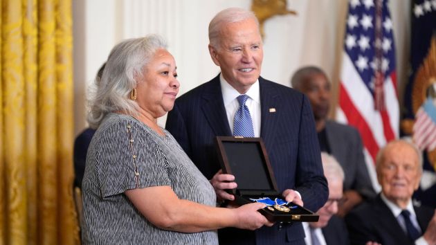 President Joe Biden, right, posthumously presents the Presidential Medal of Freedom, the Nation's highest civilian honor, to Doris Hamer Richardson on behalf of her late aunt Fannie Lou Hamer in the East Room of the White House. (Photo: AP)