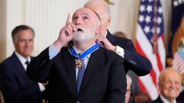 Jose Andres gestures as President Joe Biden presents him with the Presidential Medal of Freedom, the Nation's highest civilian honor, in the East Room of the White House, Saturday, Jan. 4, 2025, in Washington. (Photo: AP)
