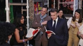 The Macrons walked around the installation, meeting artists, designers, and authors who were...