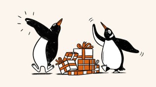 👁 Two Playful Penguins celebrate around a stack of gift-wrapped books. Illustration by Matt Blease for Penguin Random House UK. After 91 years, Alan the Penguin finally gets a social life