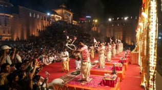 👁 Devotees participate in the grand Ganga Aarti on the auspicious first day of Chaitra Navratri, organized by Shri Kashi Vishwanath Temple Trust at Dashashwamedh Ghat, in Varanasi on Thursday. (ANI Photo) UP Govt to host cultural events at 30 temples, Shakti Peeths during Chaitra Navratri