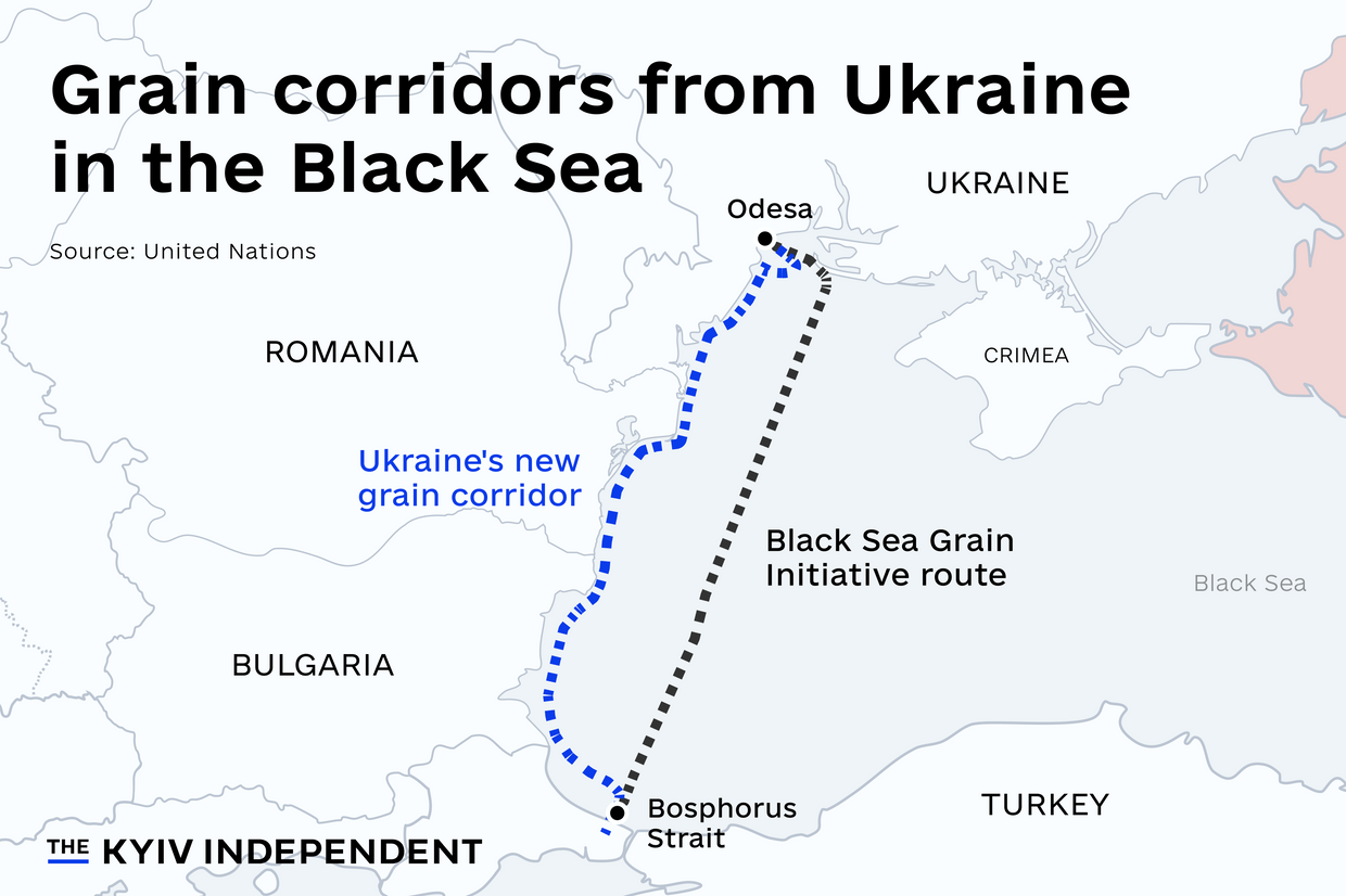 Following the end of the grain initiative, Ukraine launched what it called a humanitarian route allowing a way out for vessels that had been stuck at Ukraine’s Odesa ports since the start of the full-scale invasion.