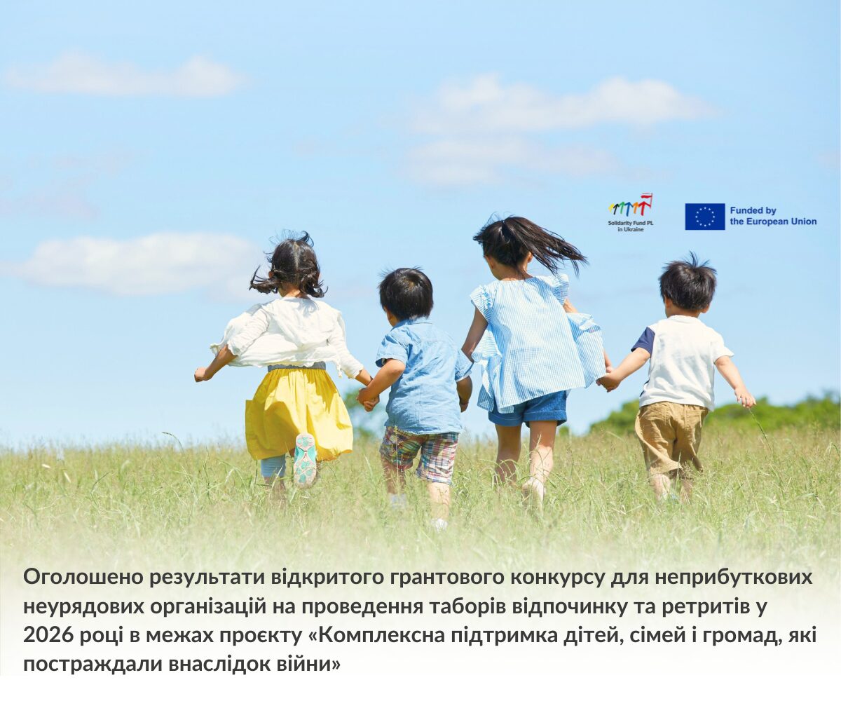 Оголошено результати відкритого грантового конкурсу для неприбуткових неурядових організацій на проведення таборів відпочинку та ретритів у 2026 році в межах проєкту «Комплексна підтримка дітей, сімей і громад, які постраждали внаслідок війни»