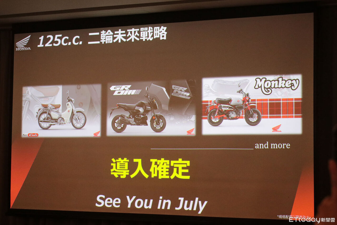 除了今天已經在現場展出的新車外,Honda台灣也提前預告,將會於今年重新導入白牌車系販售,包括Super Cub、Grom(MSX)及Monkey,讓初次跨入機車世界的新手能輕鬆加入;另外Honda台灣也會持續舉辦各項廣受好評的活動,包括安駕訓練、車主聚會、海外騎乘等,讓車主能獲得更多附加價值。