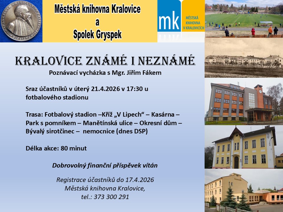 Už jste někdy byli v západočeských Kralovicích? Věnujte tomuto městečku svou pozornost. U nás v Turistickém infocentru města Kralovice Vám například zajistíme prohlídku stálé expozice rodu Gryspeků, která se nachází v kapli Nejsvětějšího srdce Páně, přímo nad hrobkou s mumiemi členů tohoto rodu. Patří dokonce k nejstarším mumiím v Česku. Rádi vám sdělíme, kam se v Kralovicích a mikroregionu Kralovicko vypravit za historií, památkami, kulturním i sportovním děním. Vyrazte za zážitky! Čeká tu na vás kostel svatého Petra a Pavla s varhany ze 17. století, barokní fara nebo Muzeum a galerie severního Plzeňska v Mariánské Týnici. V Kralovicích na Plzeňsku se vám bude určitě líbit!