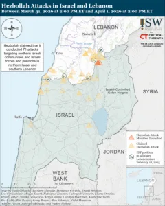 Hezbollah attacks in Israel and Lebanon between March 31, 2026 at 2:00 PM ET and April 1, 2026 at 2:00 PM ET