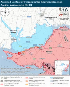 Assessed Control of Terrain in the Kherson Direction, April 2, 2026 at 1:30 PM ET