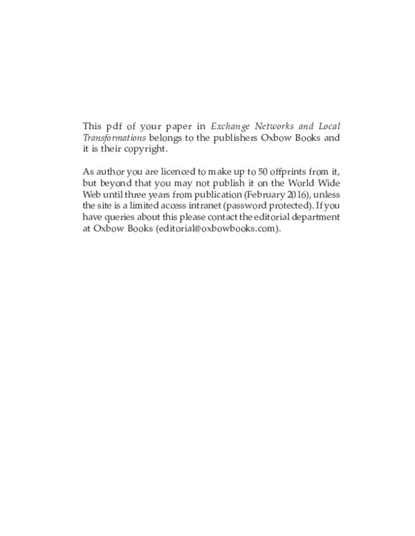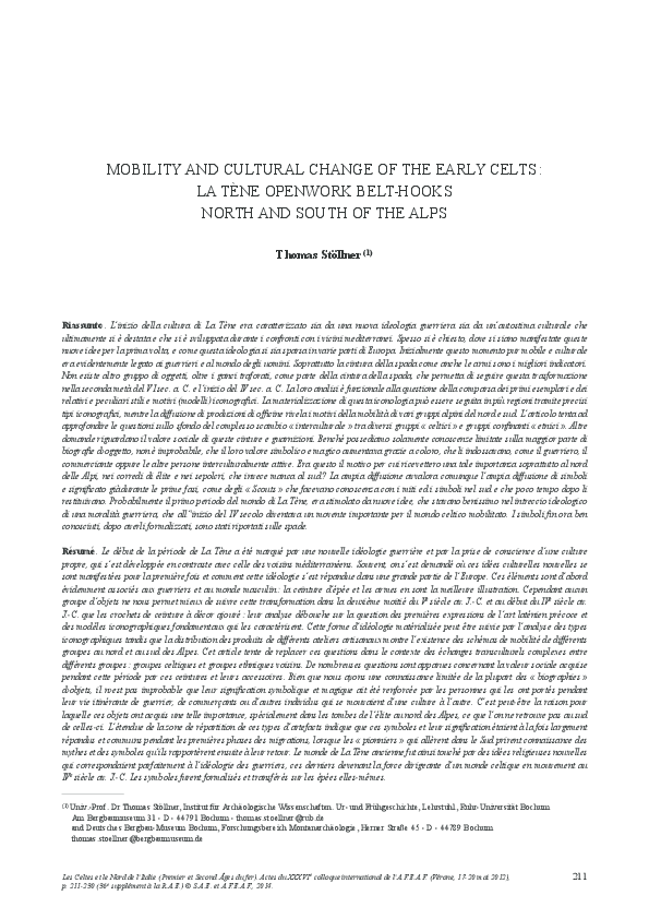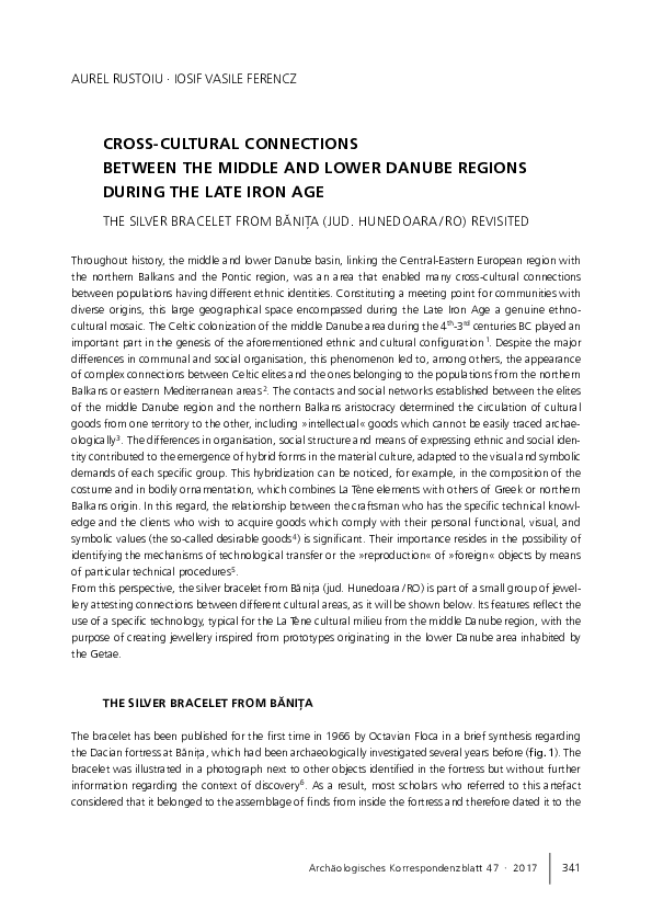 A. Rustoiu, The Celts and indigenous populations from the southern Carpathian Basin. Intercommunity communication strategies. In: S. Be- recki (ed.), Iron Age rites and rituals in the Carpathian Basin. Proceedings of the International Colloquium from Târgu Mureş, 7-9 October 2011 (Cluj-Napoca -Târgu Mureş 2012) 357-390. Rustoiu 2014a A. Rustoiu, Indigenous and colonist communities in the Eastern Car- pathian Basin at the beginning of the Late Iron Age. The genesis of an Eas- tern Celtic world. In: C. N. Popa, S. Stoddart (eds.), Fingerprinting the Iron Age. Approaches to identity in the European Iron Age. Integrating South- Eastern Europe into the debate (Oxford 2014) 142-154. Rustoiu 2014b A. Rustoiu, East meets West…The stamped pottery from the La Tène cemetery at Fântânele-Dealul Popii (Transylvania, Romania). In: C. Gos- den, S. Crawford, K. Ulmschneider (eds.), Celtic Art in Europe: Making Connections (Oxford 2014) 169-182.