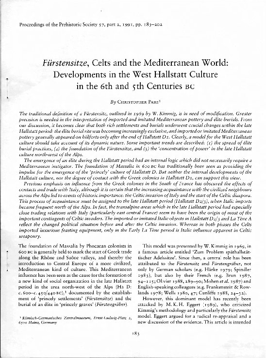 O. Buchsenschutz, The significance of major settlements in European Iron Age society. -In: Arnold, Gibson 1995, 53-63. Buchsenschutz 2002