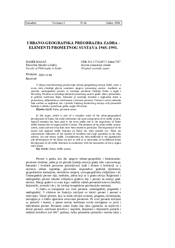 Urban and Geographic Transformation of Zadar - Elements of Traffic System from 1945 to 1991