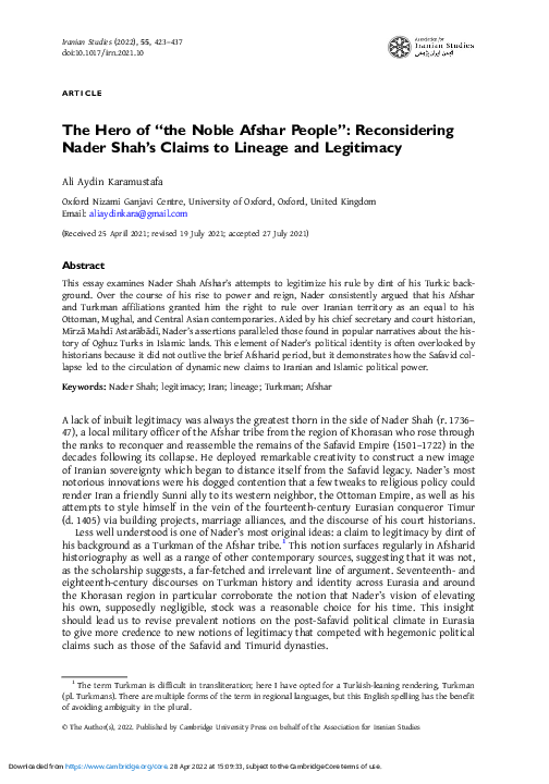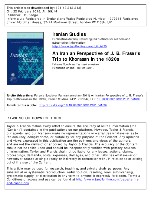 52 Dunbulī: op. cit. II/2.53 Hāshim Mīrzā: op. cit. 92.Marʽashī Ḥusaynī: op. cit. 99.tanulmány célja a Nādir Shāh halála utáni örökösödési háború eseményeinek részletes elemzésével a törzsi újjáéledés kezdeteinek és a Nādiridák autoritásának elvesztésének a feltérképezése. Kulcsszavakszázadi Irán, Nādiridák, Shāh Rukh Afshār, örökösödési háború, törzsi újjáéledés ON_2019_4_beliv_eng.indd 58 2019. 11. 19. 19:06:14