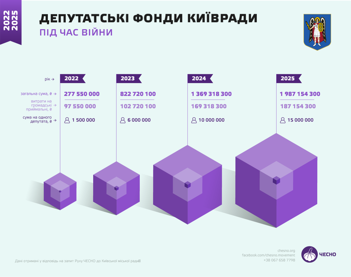 Від початку повномасштабного вторгнення видатки на депфонди столиці зростали щороку. 2022-го кожен депутат міг “допомогти” виборцям на 1,5 млн грн, 2023-го — на 6 млн грн, 2024-го — на 10, а 2025-го — на 15.