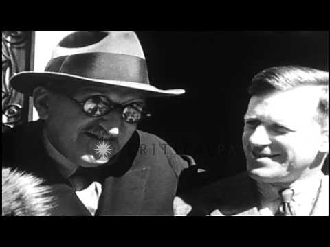 T E Lawrence (Lawrence of Arabia) talking to publisher and Mrs. Frank Nelson Doub...HD Stock Footage