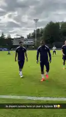 π This footage captures a dynamic training session of the French national football team. Players in their navy blue training kits are seen practicing various ball control techniques on a pristine artificial turf pitch. The drills focus on passing accuracy, heading skills, and one-on-one exchanges, highlighting the team's technical preparation under clear skies. by @equipedefrance with equipedefrance by Original Sound