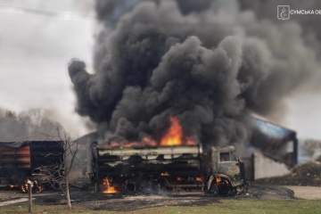 У Шосткинському районі Сумської області вранці 25 березня війська РФ атакували ударними безпілотниками будівлю пожежного депо, знищена пожежна техніка та зруйнована сама будівля.