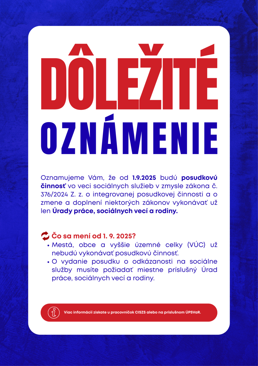 Oznámenie o prechode posudkovej činnosti na ÚPSVaR