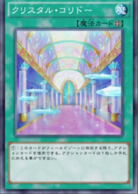 | Korean | 크리스탈 코리더 | ①: 이 카드가 필드 존에 있을 때만, 액션 카드를 사용할 수 있다.액션 카드는 턴에 단 한 장만 추가할 수 있다. |