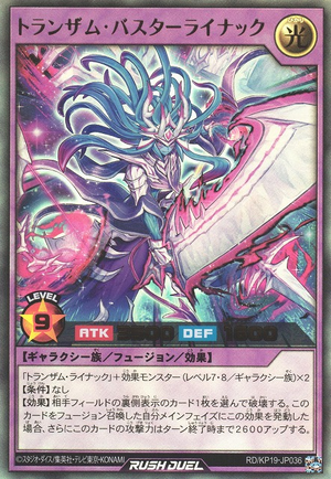 | Korean | 트랜잠 버스터라이나크 | "트랜잠 라이나크" + 효과 몬스터(레벨 7・8 / 갤럭시족) × 2